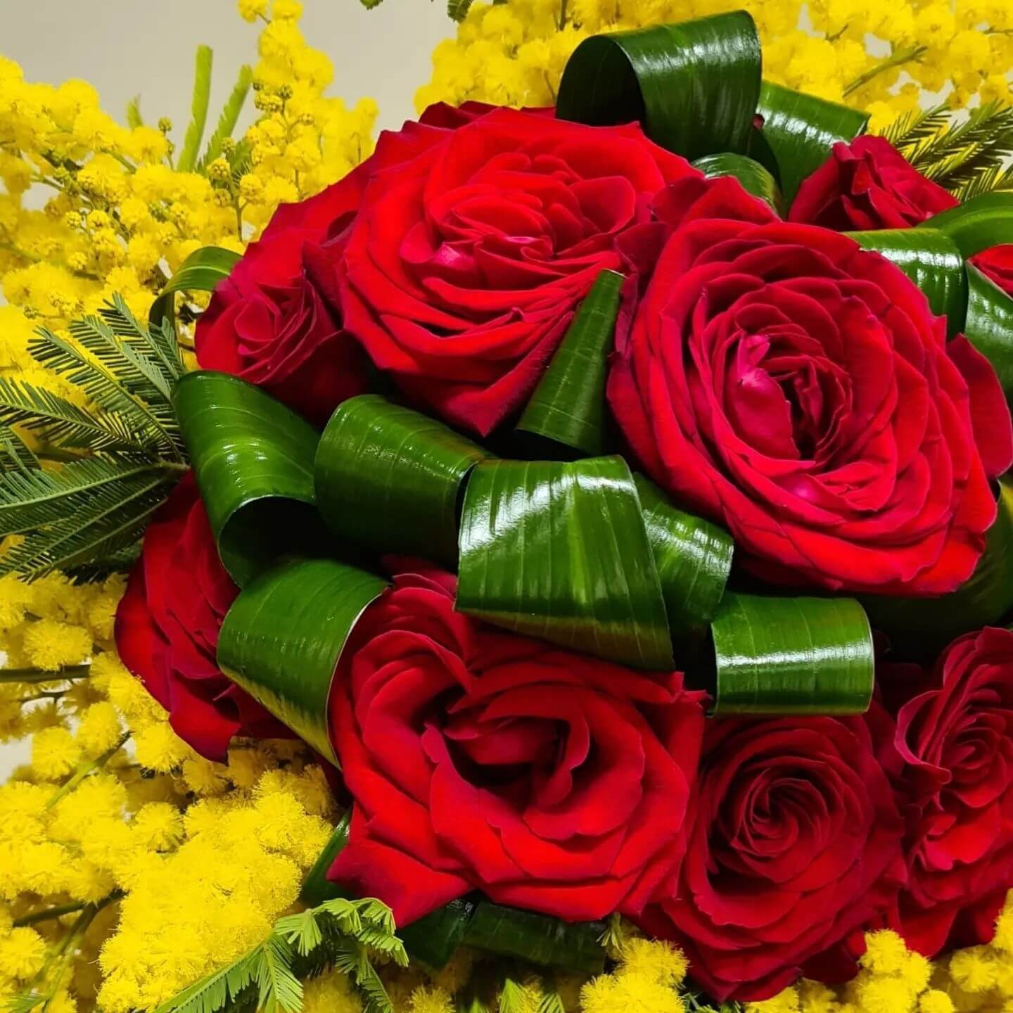 Scopri il nostro esclusivo Bouquet rose rosse e mimosa compatto per la Festa della Donna, una creazione artigianale pensata per esaltare i momenti speciali della tua vita.
